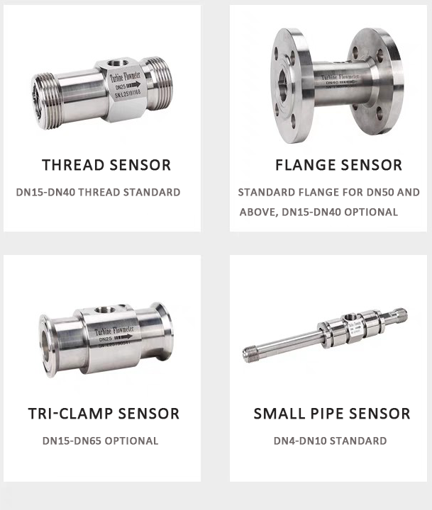 When the measured fluid flows through the sensor, under the action of the fluid, the impeller is forced to rotate, and its rotating speed is proportional to the average flow rate of the pipe. The rotation of the impeller periodically changes the reluctance value of the magneto-electric converter, and the magnetic flux in the detection coil occurs accordingly. Periodic changes occur, producing an induced potential with the same frequency as the rotation, that is, an electrical pulse signal, which is amplified by the amplifier and sent to the display instrument for display.